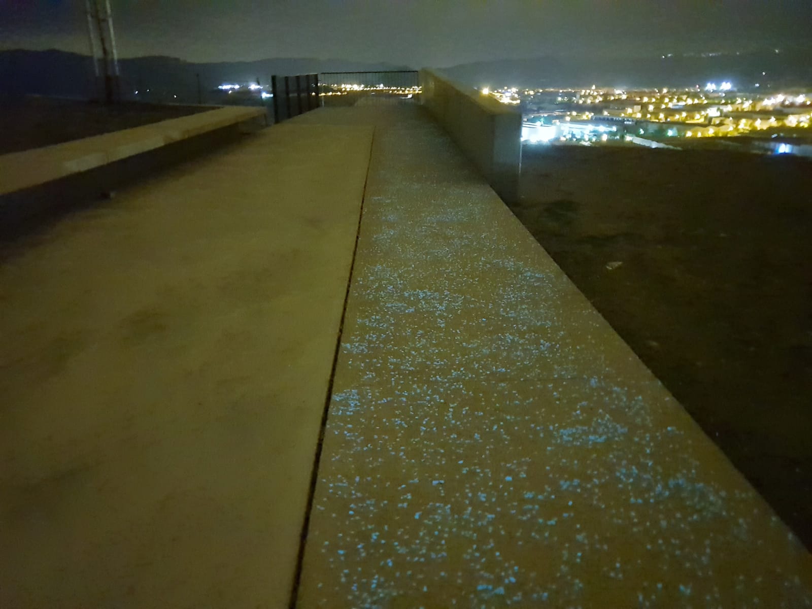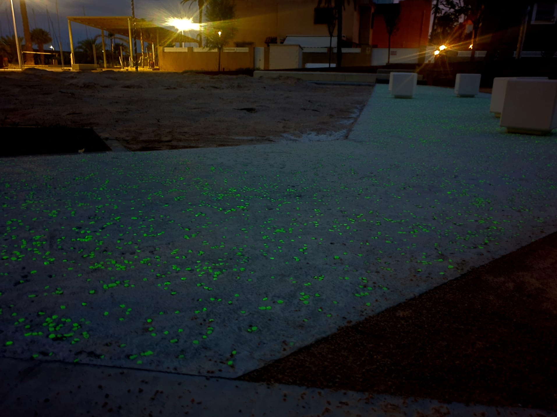 El árido/ piedra fotoluminiscente se aplica sobre la superficie del elemento a tratar.