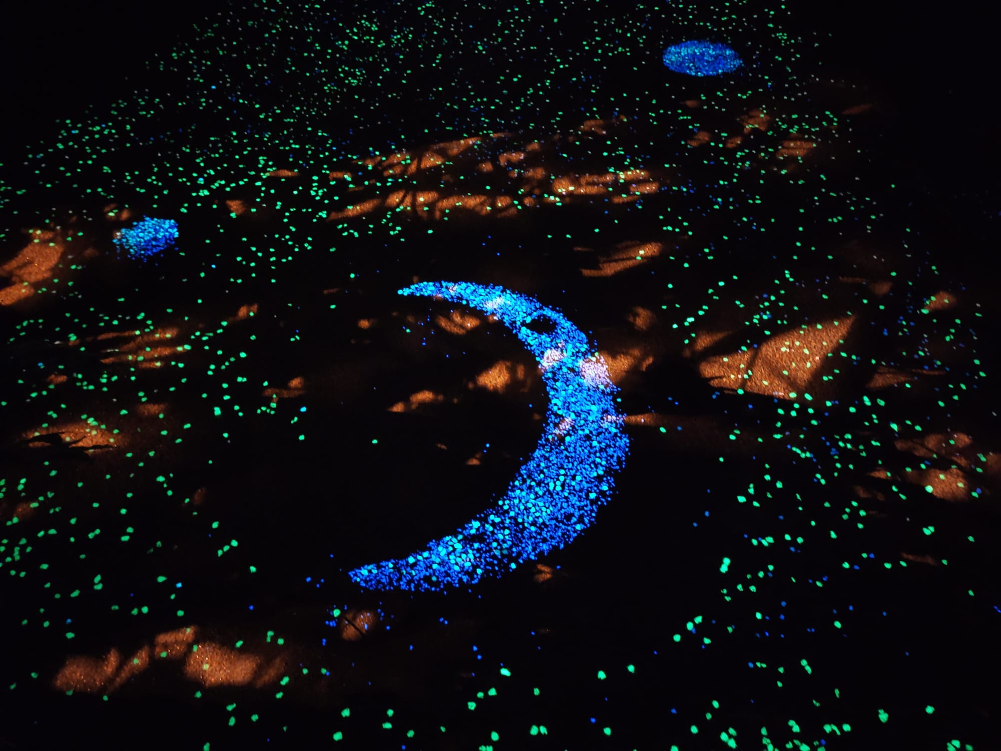 Para que se pueda apreciar el efecto de la luminiscencia, no tiene que incidir ninguna luz directamente sobre la superficie a tratar.