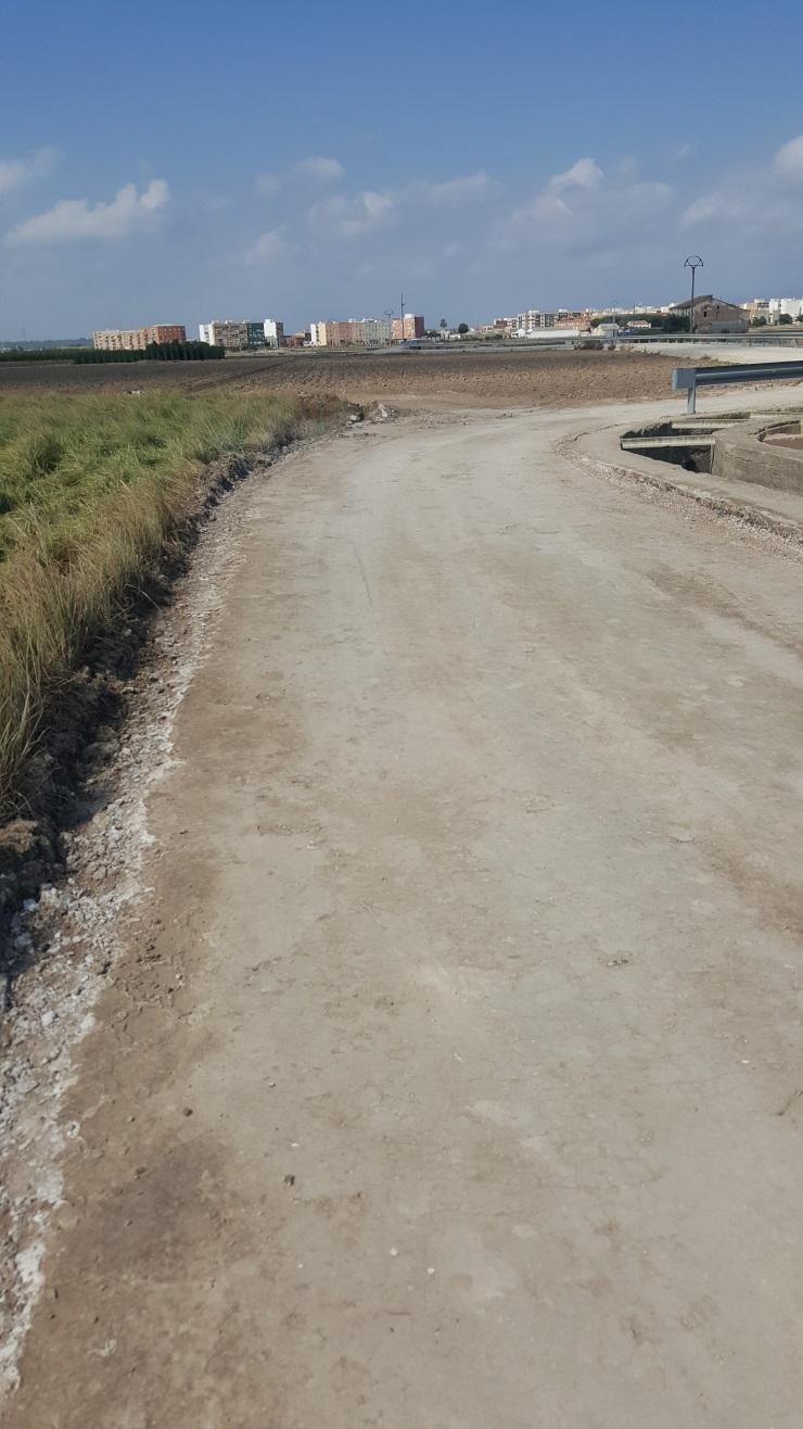 Aplicación de nuestro aditivo conglomerante para estabilización de terrenos en el camino de Albors, Valencia. España; con una longitud 200 metros por un ancho medio de 3 metros, es decir unos 600 m2.